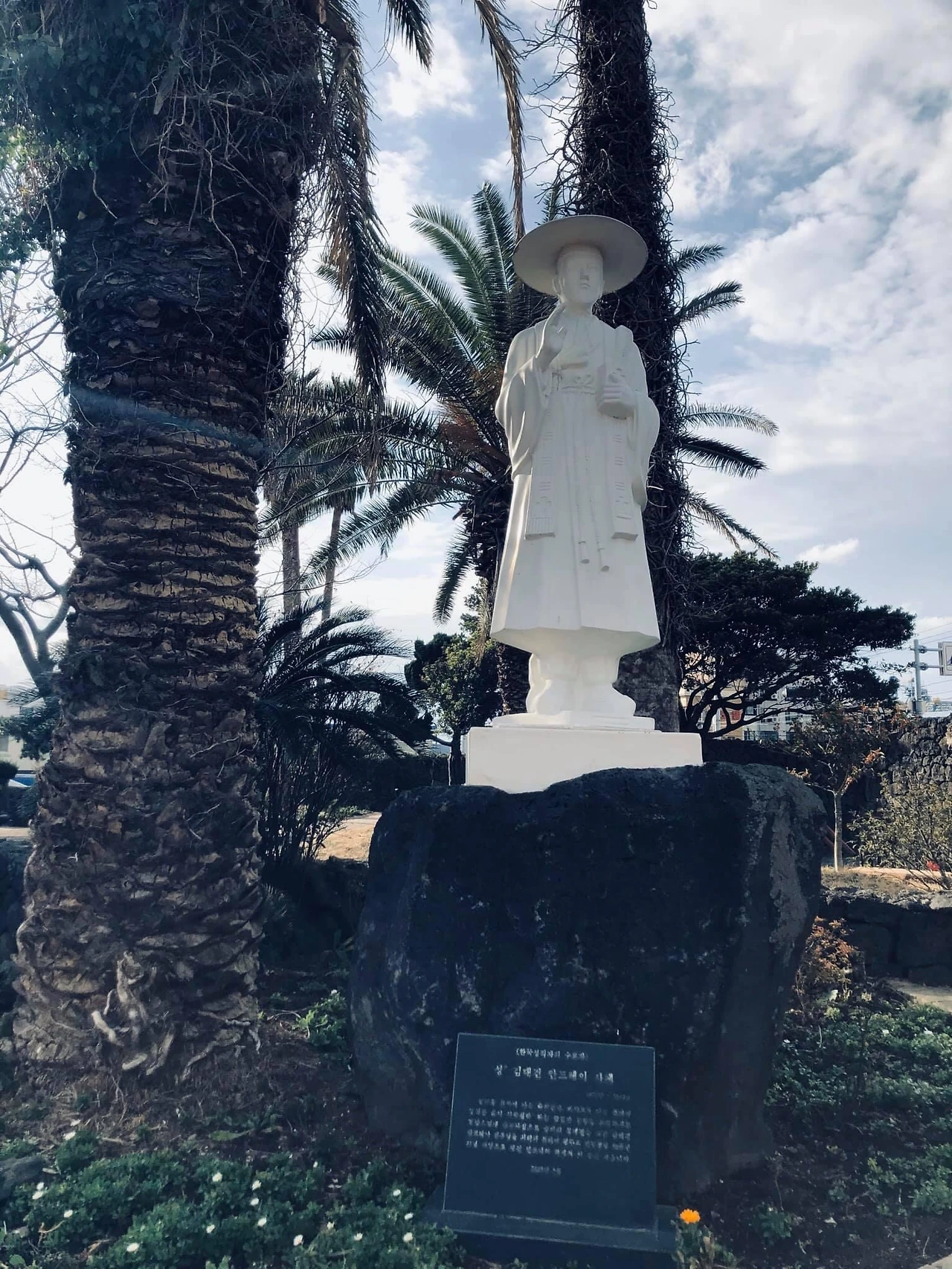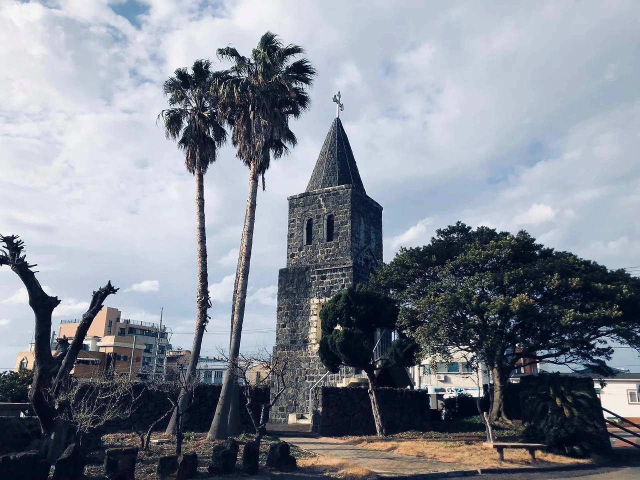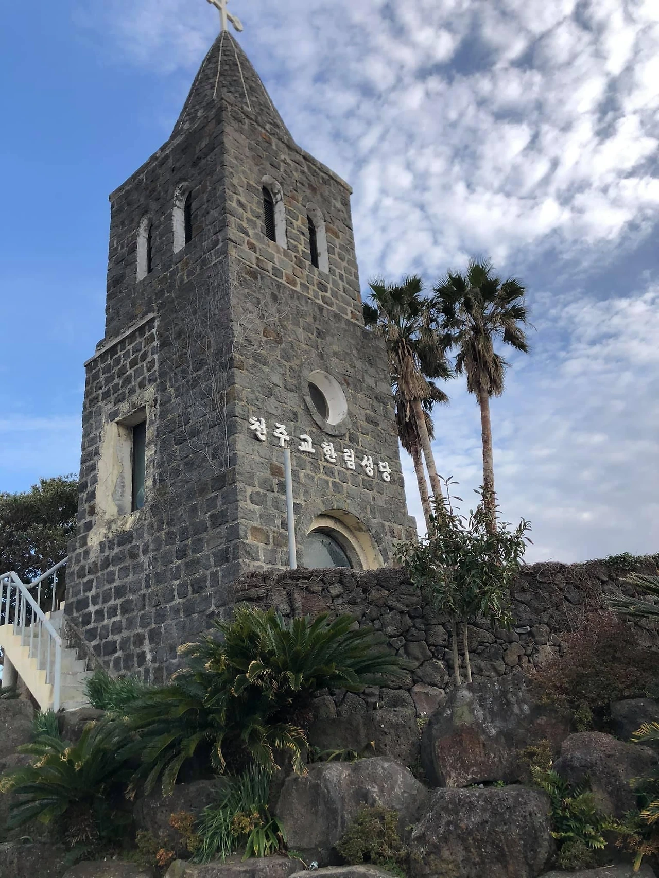 현무암 돌담길과 싱그러운 초록의 야자수가 성당 건축물과 함께 어우러지면서 제주만의 독특한 정경을 만들어 내고 있어 눈길을 사로 잡는다. 아름다운 성당의 풍경에 푹 빠졌던 오늘.