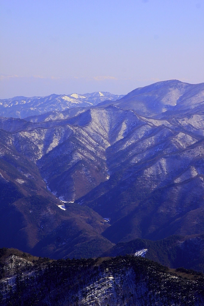 공기 푸르고 바람 시린 정상에서 감사한 마음으로 동해를 내려 보다가 등 돌려 내륙 쪽으로 시선 던지면 그야말로 알프스에 온 듯 착각에 빠진다. 첩첩 마루금들이 세상엔 온통 산 뿐이라는 걸 각인시킨다.