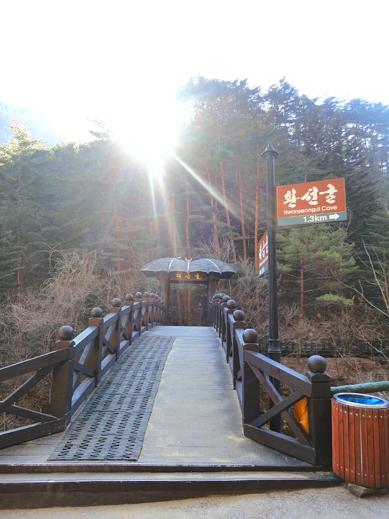 해발 820m의 산 중턱에 있는 동양 최대 동굴인 환선굴幻仙窟을 오른쪽으로 두고 산길을 오르면서 내내 희망을 밟고 오르는 기분이다. 굴 입구까지 운행하는 초록색 모노레일을 보며 거긴 내려오다가 시간이 맞으면 들르기로 한다.