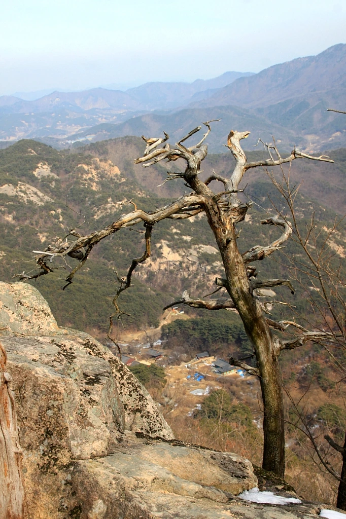 다리뿐 아니라 팔과 손목에도 상당한 힘이 필요함을 실감한다. 산은 종종 두 팔, 두 발로 기어오르게끔 하면서 절대 만만한 산이 없음을 깨닫게 한다. 시원하게 목을 축이고 영국사를 내려다보는데 눈발 실은 바람이 휙 떼 지어 불어오면서 땀을 씻어준다.