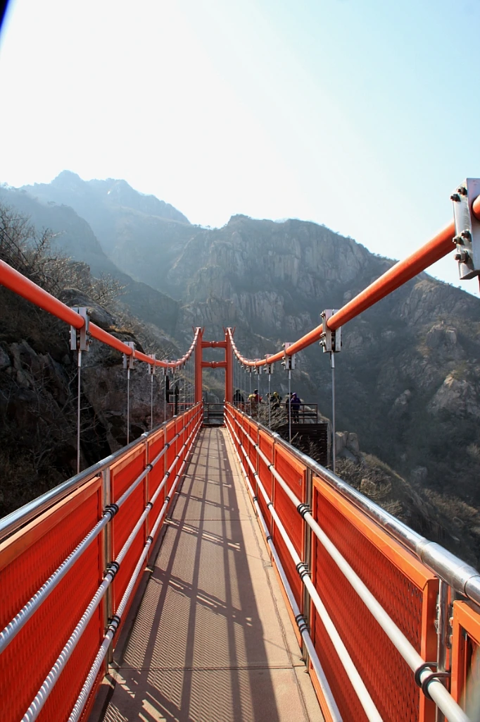 바위 사이 봄 오는 길과 함께 회백색 봉우리들 사이로 빨간 구름다리가 보인다. 서너 시간 걸리던 매봉과 사자봉을 5분 거리도 채 안 되게 단축한 이 다리는 해발 510m, 지상 높이 120m에 길이 54m로 200명이 동시에 이용할 수 있다.