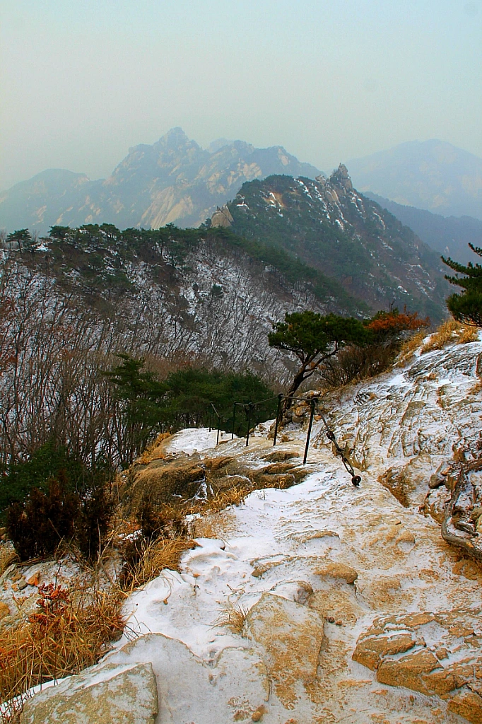 백운봉암문에서 용암문으로 빠지는 길은 좁고 가파른 편이어서 더 조심스럽다. 주말이나 휴일엔 맞은편에서 오는 사람들로 인해 정체가 매우 심한 곳이다. 붉게 홍조 띤 등산객들의 얼굴에서 추위보다 행복한 포만감이 먼저 느껴진다.