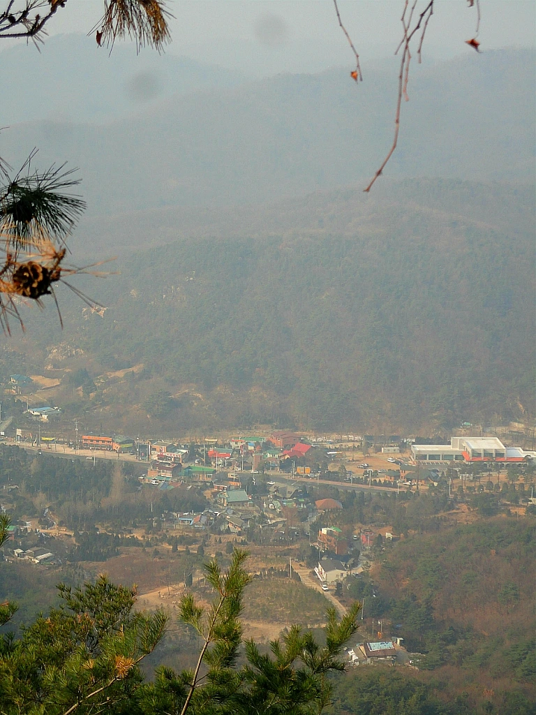 원효봉 오름길에 내려다본 효자리도 마을 전체가 동면을 취하는 양 고요하고, 마을 뒤 노고산 역시 저 자신은 하얀 잔설 털어내지 못하면서 아랫마을을 푸근히 감싸 안고 있다.