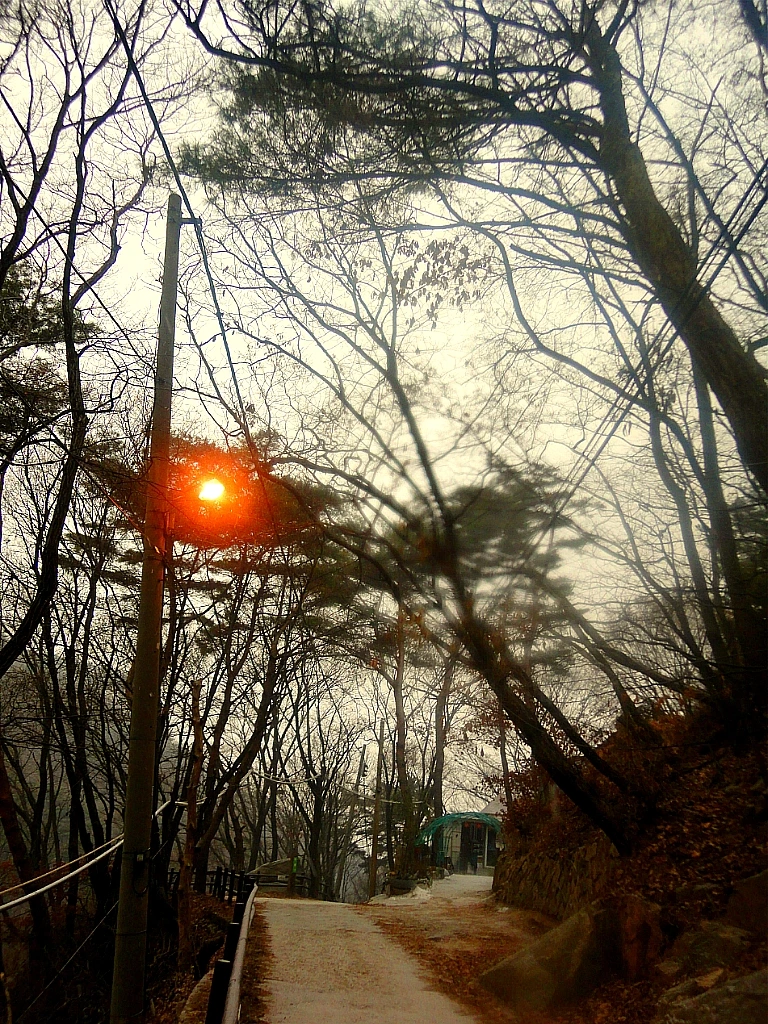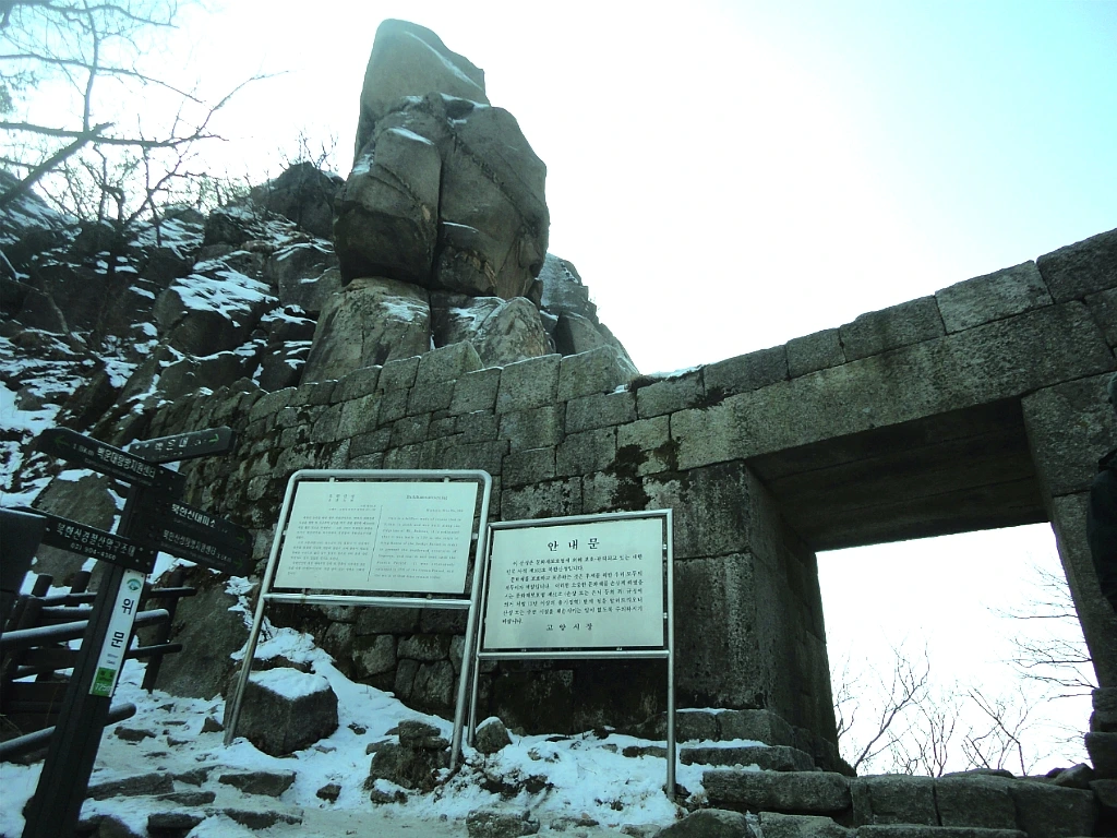 신발에 아이젠을 채운 잰걸음으로 열 번째 부왕동암문에 다다르자 어디든 기대고픈 생각이 든다. 눅진함과 나른함이 몰리긴 하지만 걸음을 재촉하지 않을 수가 없다. 조금씩 눈발이 흩날리기도 하고 해 떨어지면 바로 어둠인지라.