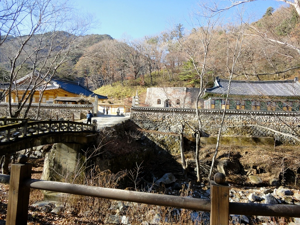 가야산 지킴 초소까지도 무난하게 내려왔다. 해인사 앞에 외나무다리가 놓여있다. 숭유억불 정책이 시행되던 조선 시대 때 양반이 말을 타고 법당 앞까지 들어오는 행패를 막기 위해 만들었다는데 언제부턴가 이 다리를 건너야 극락에 도달한다는 속설이 사족처럼 붙어 전해 내려오고 있다.