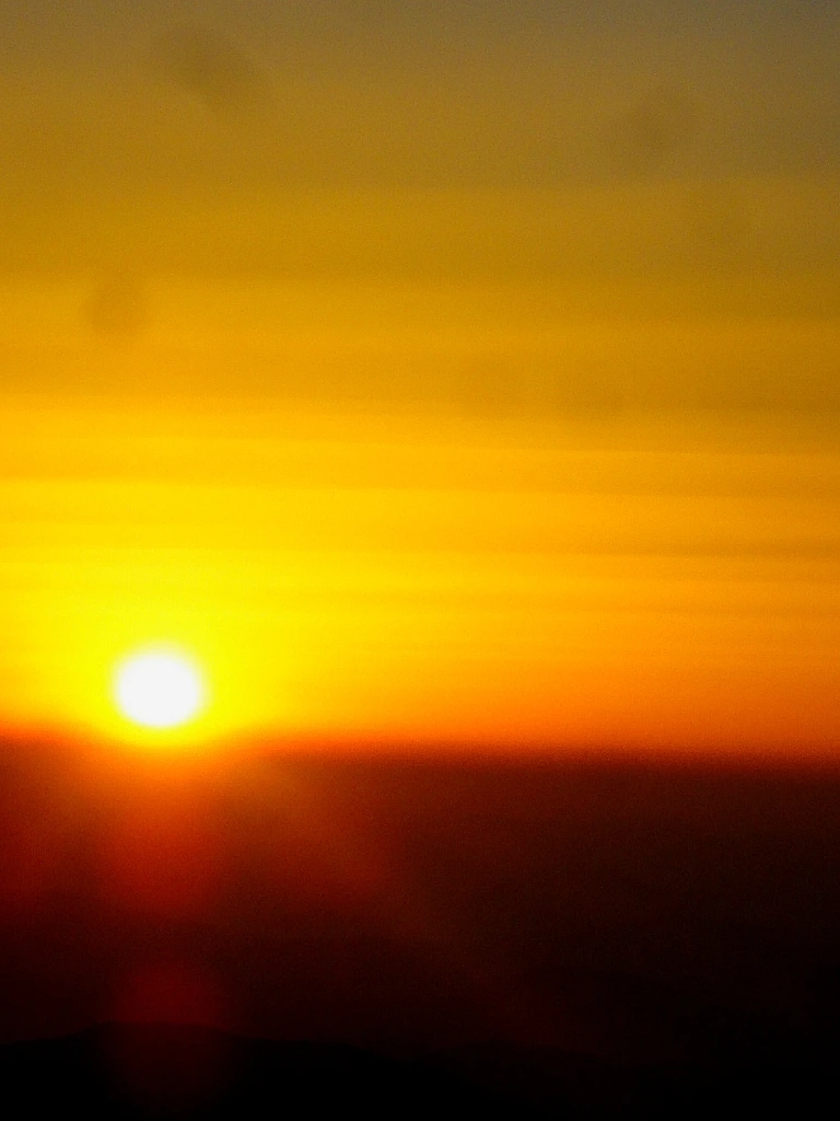 둥글고 찬란한 태양이 머리부터 빛을 발하더니 빠른 속도로 치고 올라온다. 산에서의 해맞이는 스위치를 올리면 바로 켜지는 불빛이 아니라 차분하면서도 빠른 걸음으로 달려와 품에 안기는 모습이다.