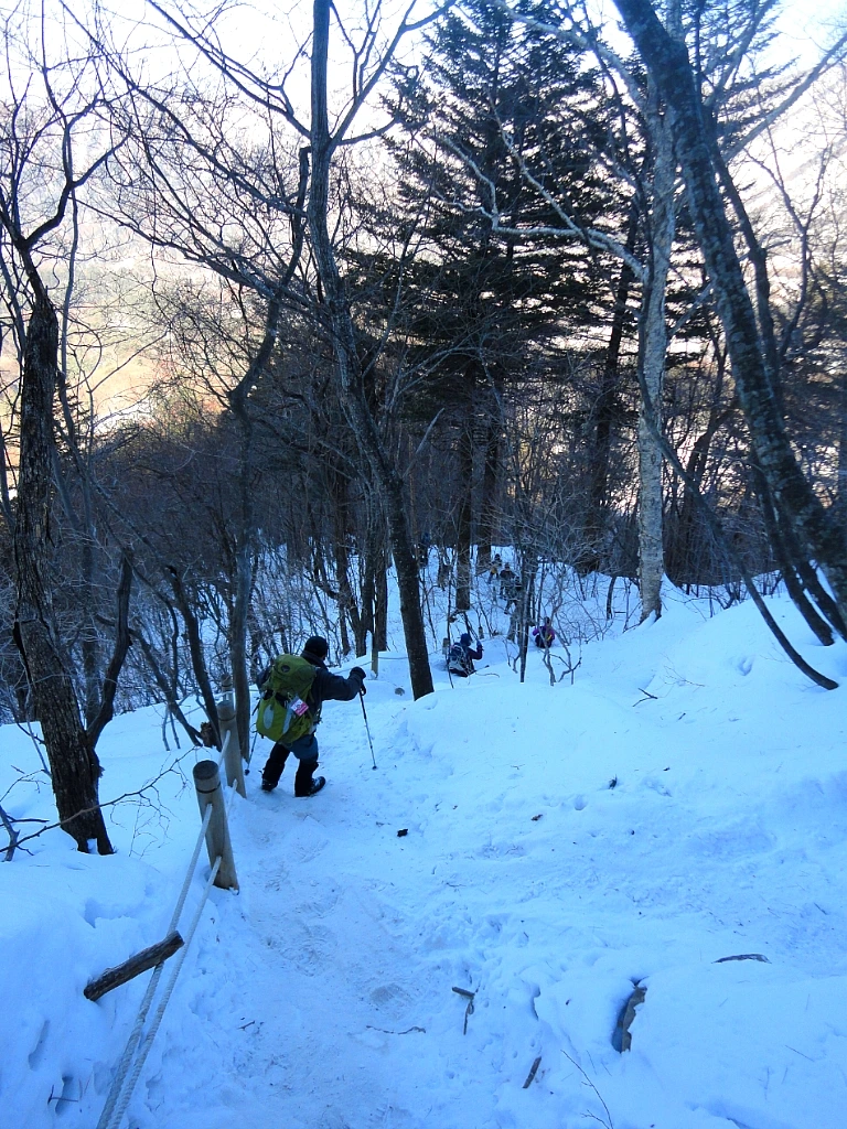 산림문화휴양관을 지나 이단 폭포를 곁눈질하고 부지런히 걷지만 이후 속도가 붙지 않는다. 뒤를 돌아보니 함께 온 일행들도 스틱에 의존해 근근이 걸음을 내디디고 있다. 깊숙한 눈밭에 박힌 발을 빼내고 또 빼내다 보니 걷는 속도보다 눈에서 종아리를 끄집어 올리는 게 더 큰 일이다.