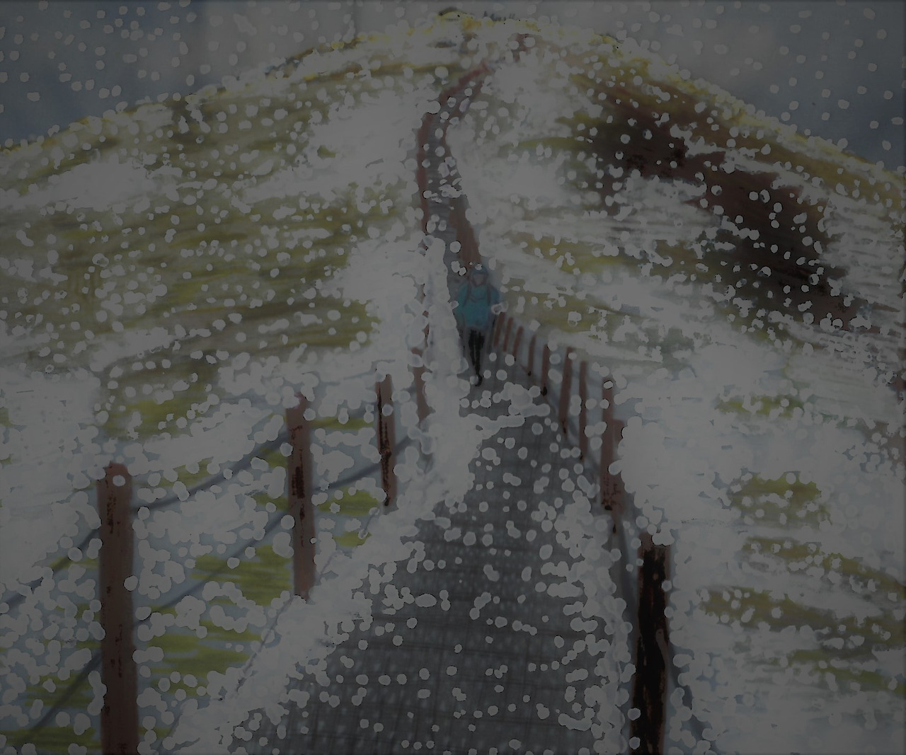 어의곡 방향의 긴 데크 길이 설국열차가 지나갈 레일처럼 길게 뻗어있다. 눈발을 피해 고개 숙인 채 그 길을 걸어오는 산객들의 모습에서 깊은 동지애를 느끼게 된다.