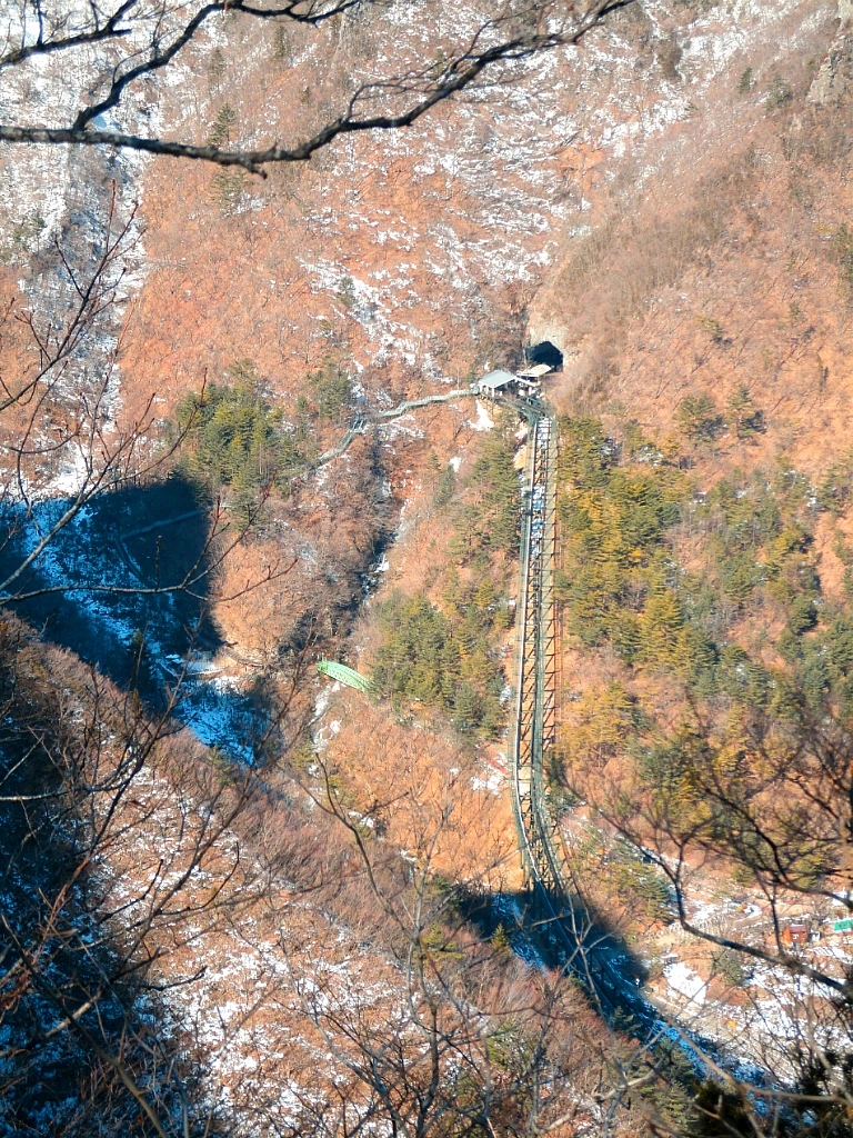 해발 820m의 산 중턱에 있는 동양 최대 동굴인 환선굴幻仙窟을 오른쪽으로 두고 산길을 오르면서 내내 희망을 밟고 오르는 기분이다. 굴 입구까지 운행하는 초록색 모노레일을 보며 거긴 내려오다가 시간이 맞으면 들르기로 한다.