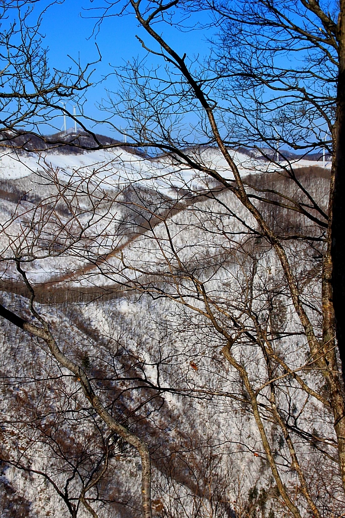 지금처럼 퍽퍽하게 눈 쌓인 날이 아니었다면 백두대간 종주 리본을 단 많은 이들이 이쯤에서 중첩된 산마루와 탁 트인 동해를 보며 심신의 피로를 훌훌 털어냈을지도 모르겠다.