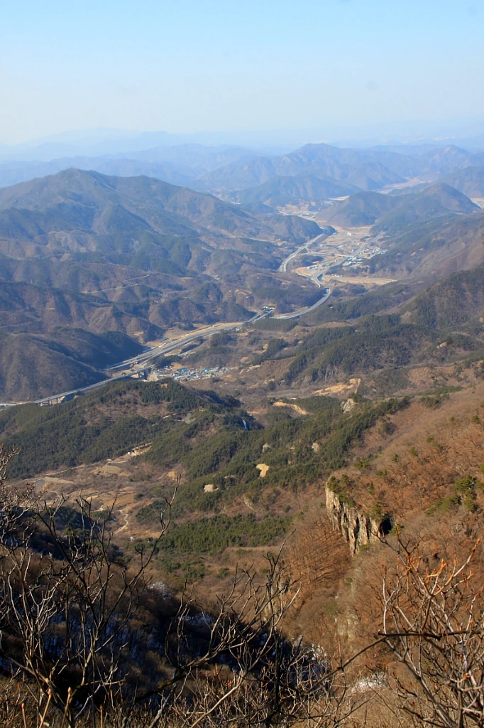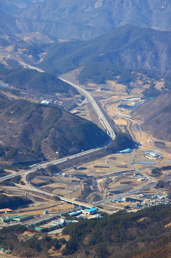 저 아래로 가늘게 뻗친 대전, 통영을 잇는 고속도로가 아득하다. 남덕유산에서 향적봉까지 길게 이어지는 육구 종주의 능선 마루금을 한참 눈에 담으며 곧 만날 것을 약속한다.