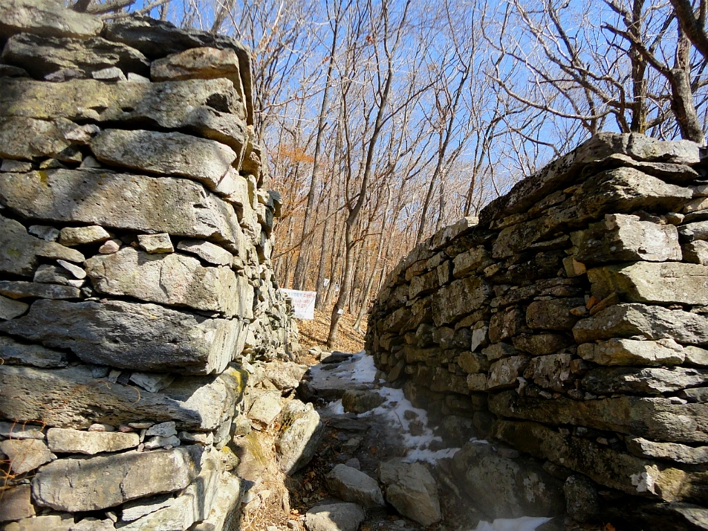 차곡차곡 넓적한 바윗돌을 쌓아 축성한 적산산성 터를 지나 하얀 눈길을 걷는다. 지그재그식으로 길을 내 가파르고 험한 산을 오르내리기 쉽도록 다듬었다. 고속도로나 터널과 달리 등산로를 수월하게 꾸몄다는 건 산길을 길고 멀게 늘려놓았다는 말과 다르지 않다.