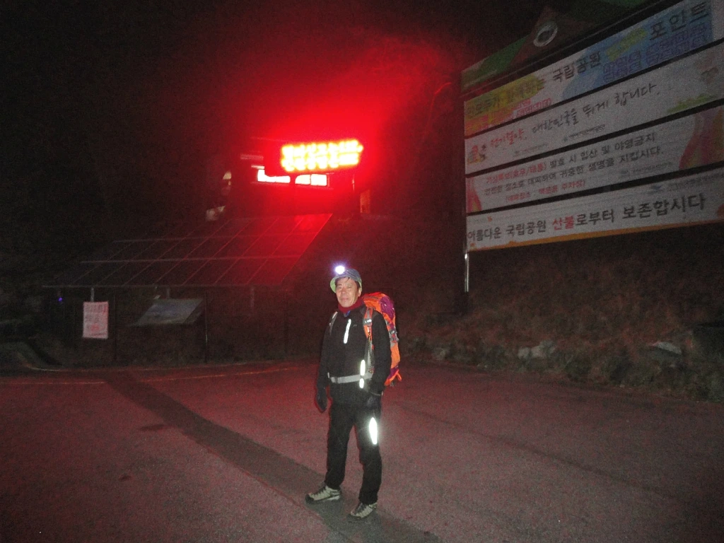 야생화 전시관을 지나 탐방안내소 맞은편 들머리에 발을 들여놓을 때는 아직 어둠이 걷히지 않은 시각이라 헤드 랜턴을 착용하였다. 아침 식사를 챙겨 먹느라 함께 버스를 타고 온 일행들을 놓쳐버렸다. 덕분에 요란스럽지 않게 친구와 오붓한 새벽 산행을 시작하게 된다.
