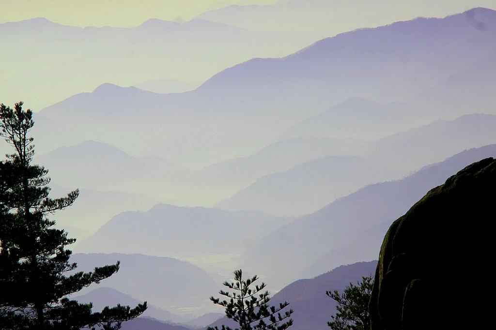 상아덤으로 오르려면 봉우리를 두어 번 넘어야 하는데 헤아릴 수 없을 정도로 많은 계단을 오르게 된다. 올라와 숨을 고르면서 첩첩산중을 살피다가 실금처럼 가느다란 팔공산 마루금을 눈에 담게 된다. 가야산에서 팔공산을 가늠한다는 게 반갑기 그지없다. 멀리 지방에 와서 친숙한 지인을 만난 기분이다.