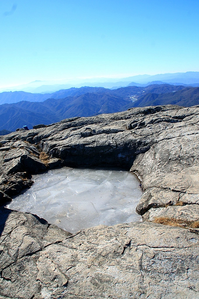 그리 청량해 보이지 않는 우비정의 샘물 대신 물병을 꺼내 갈증을 씻고 정상을 떠난다.