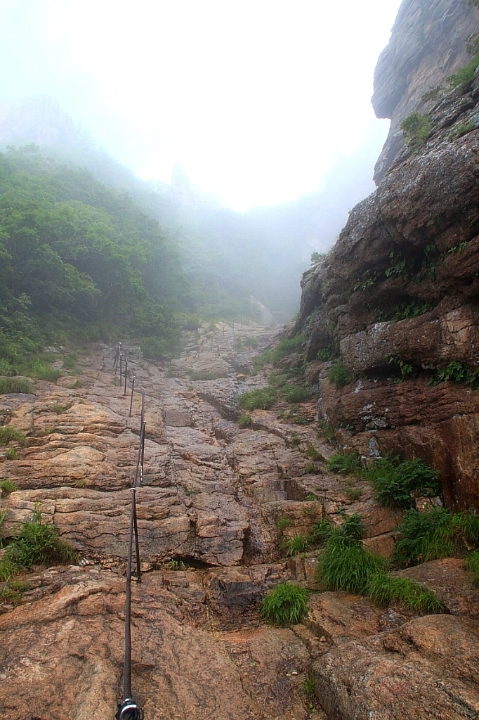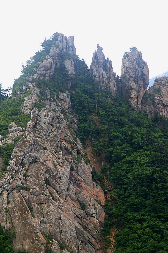 꽤나 미끄러운 바윗길이지만 간간이 싱그러운 햇빛과 하늘을 찌를 듯한 암봉들의 자태가 펄펄 기운 넘치는 충만한 생명력을 느끼게 한다.