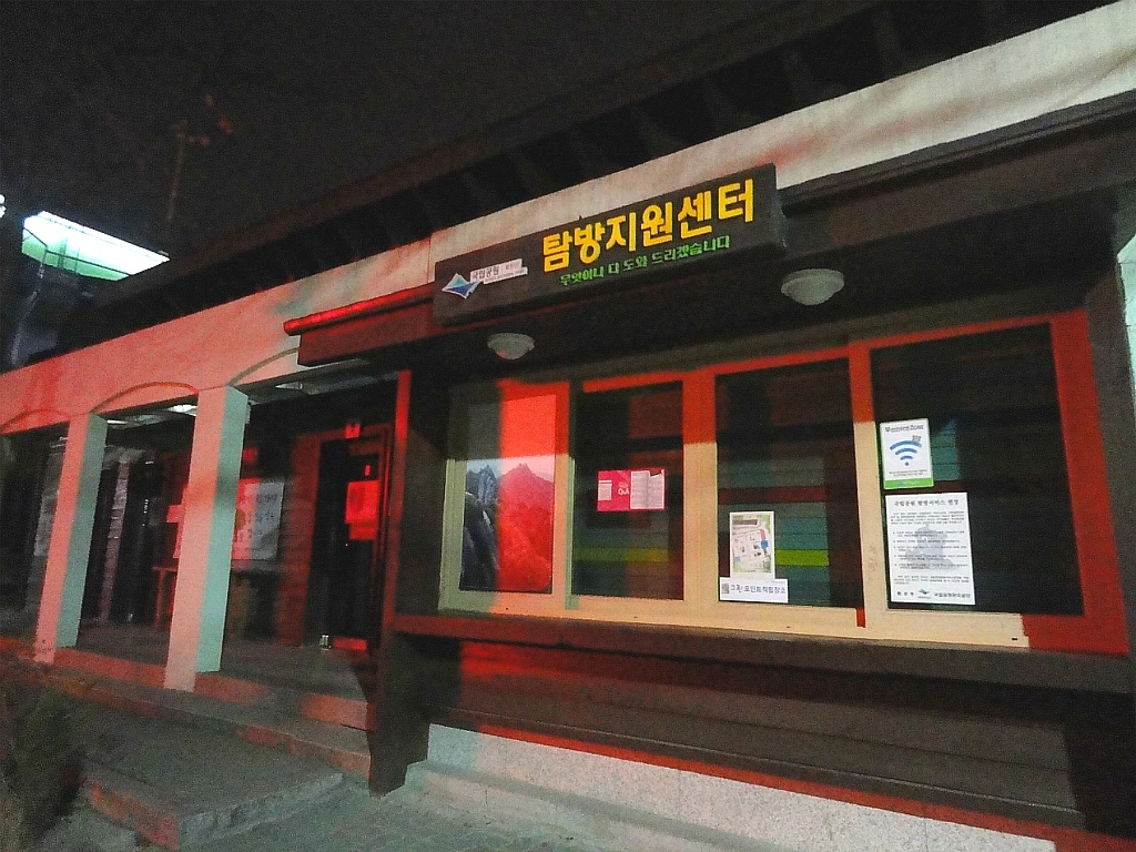 가게가 모두 닫혀 자판기에서 커피 한 잔 빼 마시고 사패산 오르는 회룡골 들머리로 향한다. 아무도 없는 회룡 탐방지원센터를 지난다.