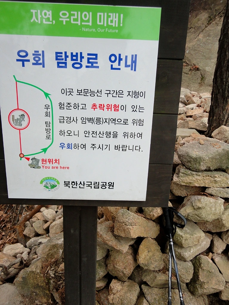 성도원으로 내려갔다가 보문능선길을 타고 다시 우이암으로 오르는 수밖에 달리 방법이 없다.