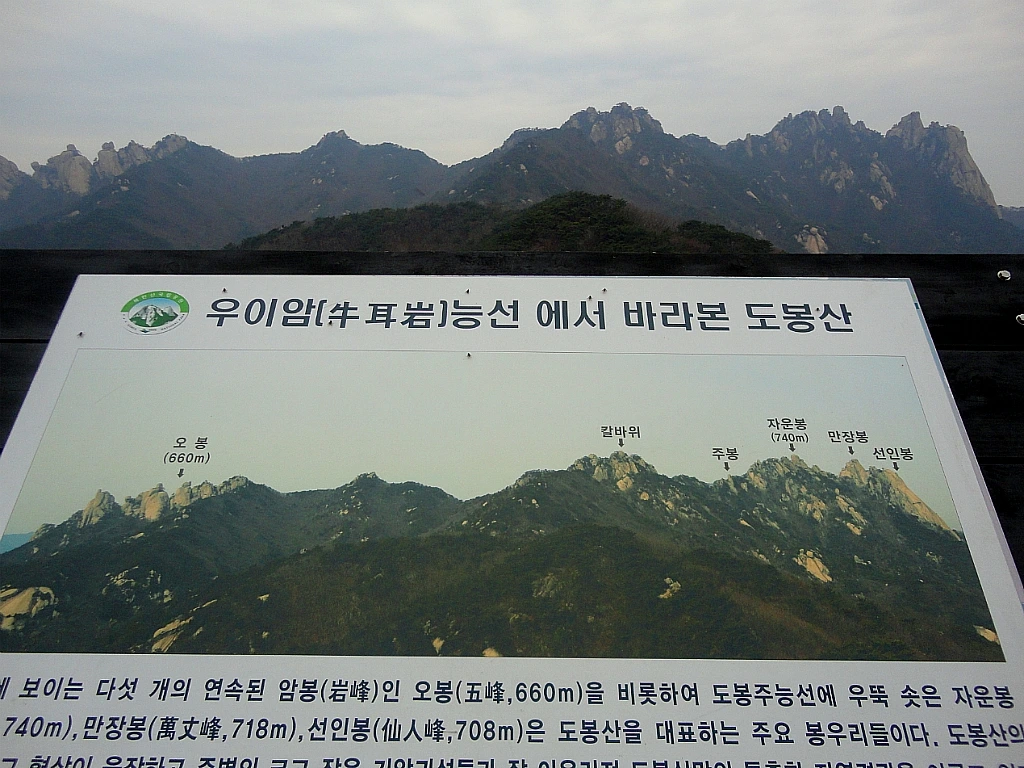 막 지나온 도봉산 암봉들도 고개 내밀어 유종의 미 거두기를 기원해주는 듯 보인다.