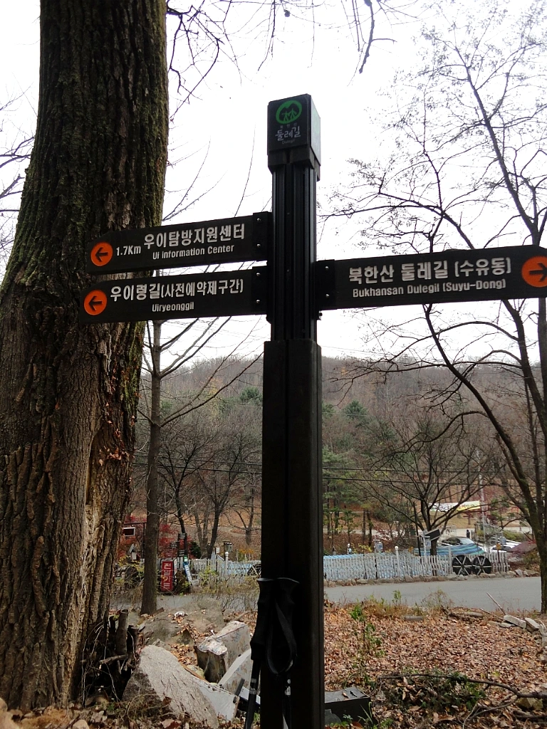 도봉산에서 내려와 청산가든을 끼고 왼쪽으로 돌아 우이령 가는 길이 마지막 종주길 북한산 들머리이다.