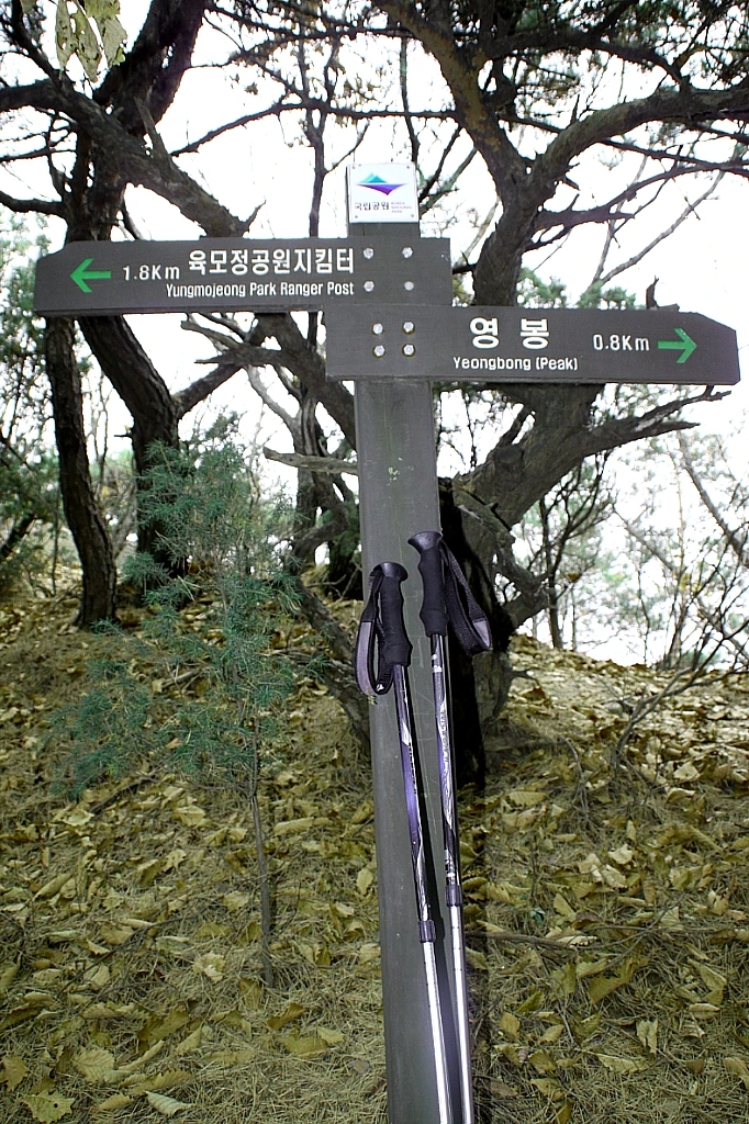 청운 산장 직전 왼편 용덕사 가는 길이 5산의 마지막이자 가장 긴 여정의 진입로이다. 영봉을 가리키는 이정표가 군입대 시 까까머리 장정들을 마구 몰아넣는 교관의 지시봉처럼 보인다.