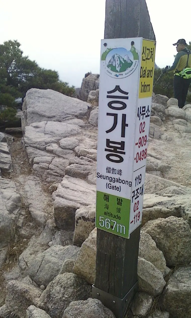 걷는지 기는지 모르지만 흐릿한 정신 스틱에 의지하다 보니 승가봉에 다다른다.