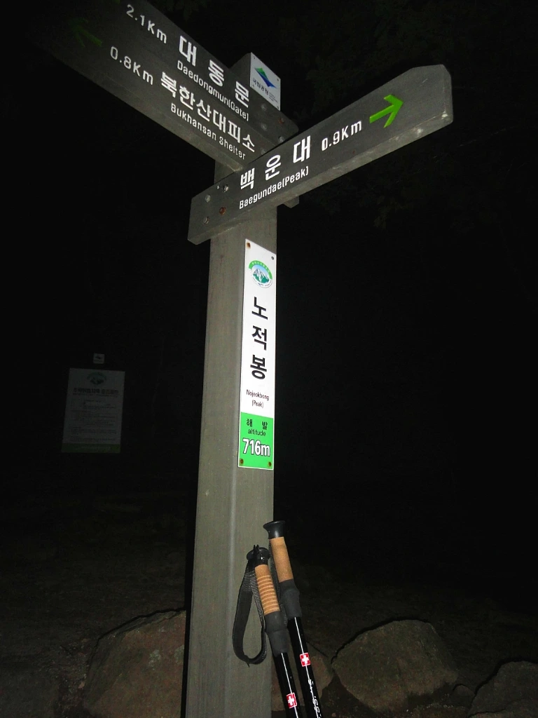두 번째 봉우리 향로봉으로 향한다. 어둠이 몰려오기 전에 최대한 많은 거리를 확보해 두는 게 나을 것 같아 보폭을 크게 한다. 종종 유기견이 출몰한다고 하니 스틱을 꽉 움켜쥐게 된다.