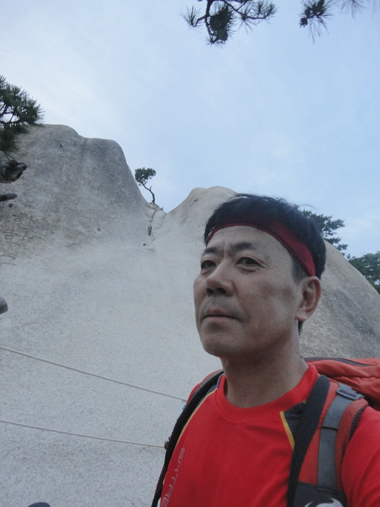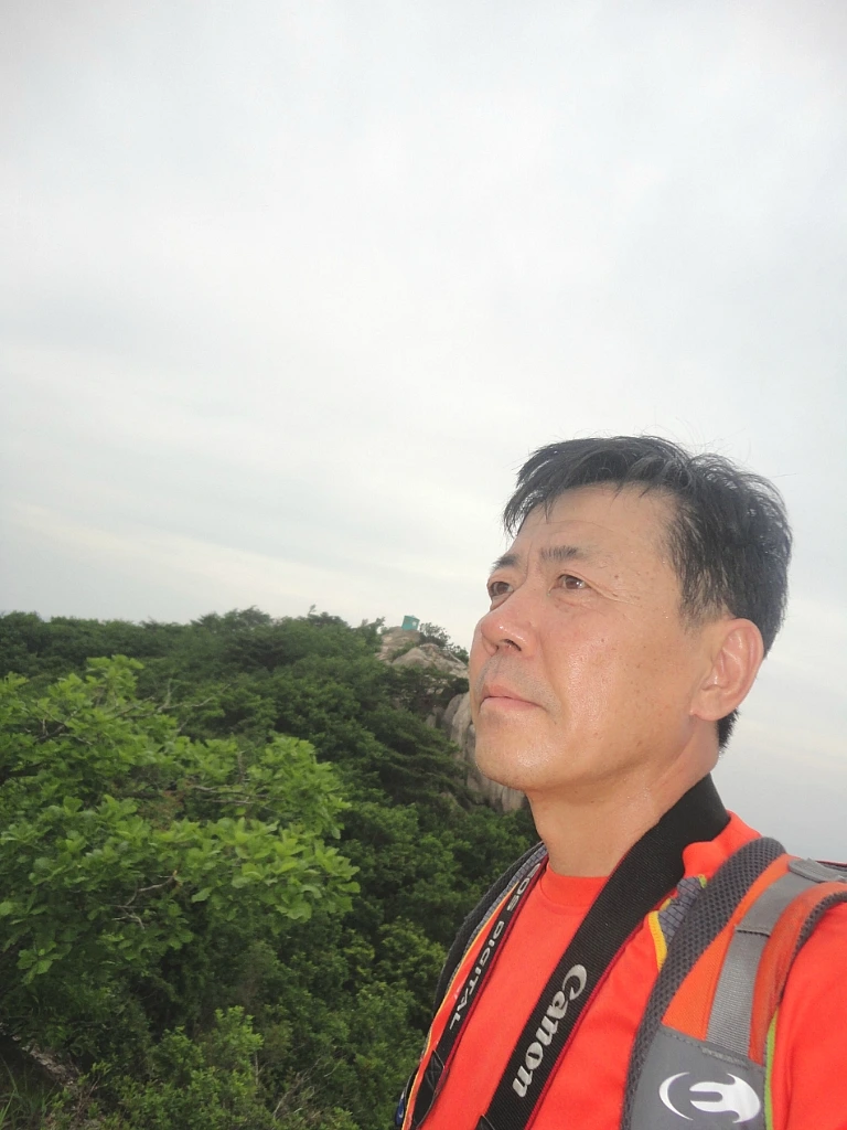 여성봉에 이르렀을 때는 날이 밝았다. 여성봉을 배경으로 찍는 셀카가 어색하다.