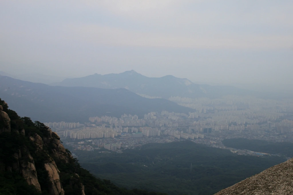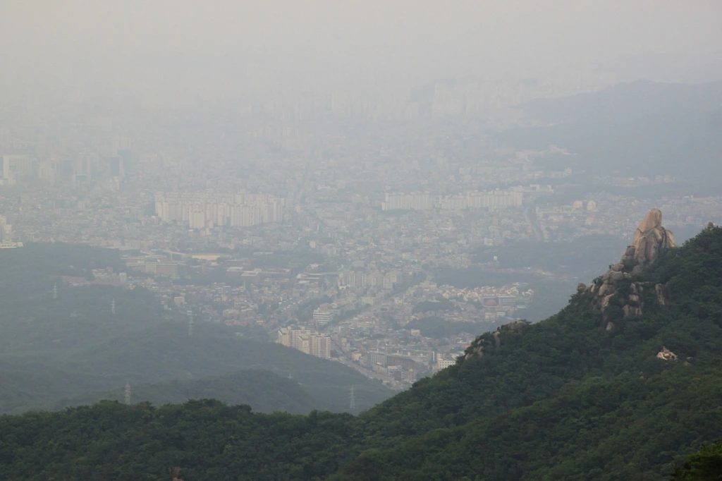 서울 강북구 일대의 도심이 아침나절부터 짙게 깔린 연무로 흐릿하다. 미세먼지 인지도 모르겠다.