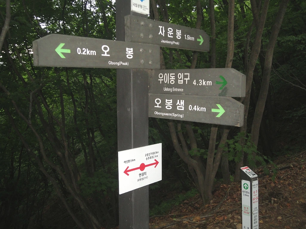 곳 / 송추 - 오봉탐방지원센터(1.9km) - 여성봉(2.0km) - 오봉(1.2km) - 오봉 고개 - 칼바위 - 주봉 -