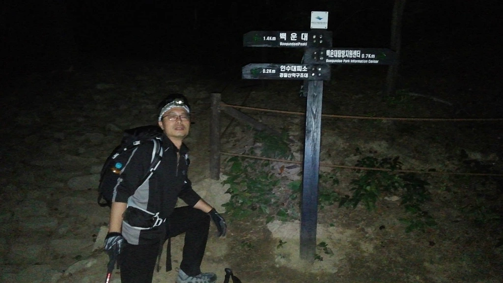 깜깜한 야밤에 북한산 정상을 오르긴 첨이다.