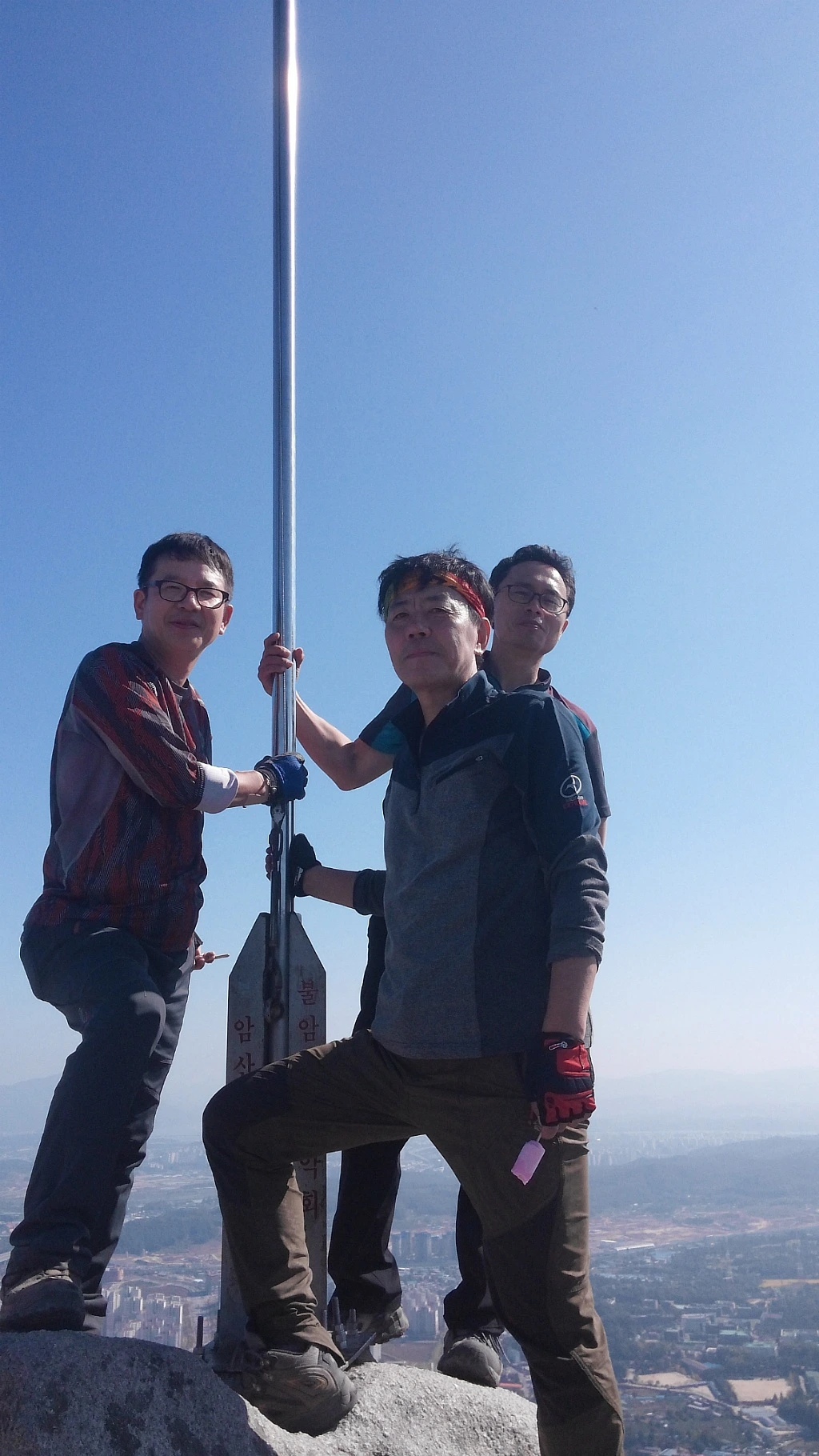 또다시 태극기를 접한다. 불암산 정상(해발 508m)의 게양대 옆에 나란히 서서 사진을 찍을 때는 다들 형언키 어려운 희열을 맛보게 된다.