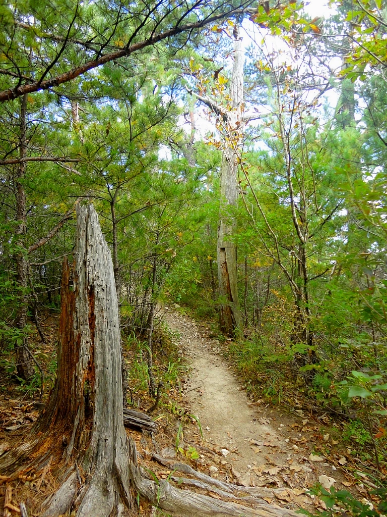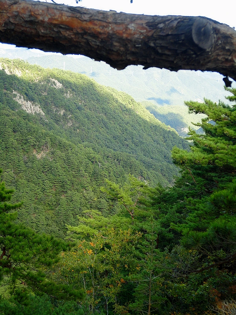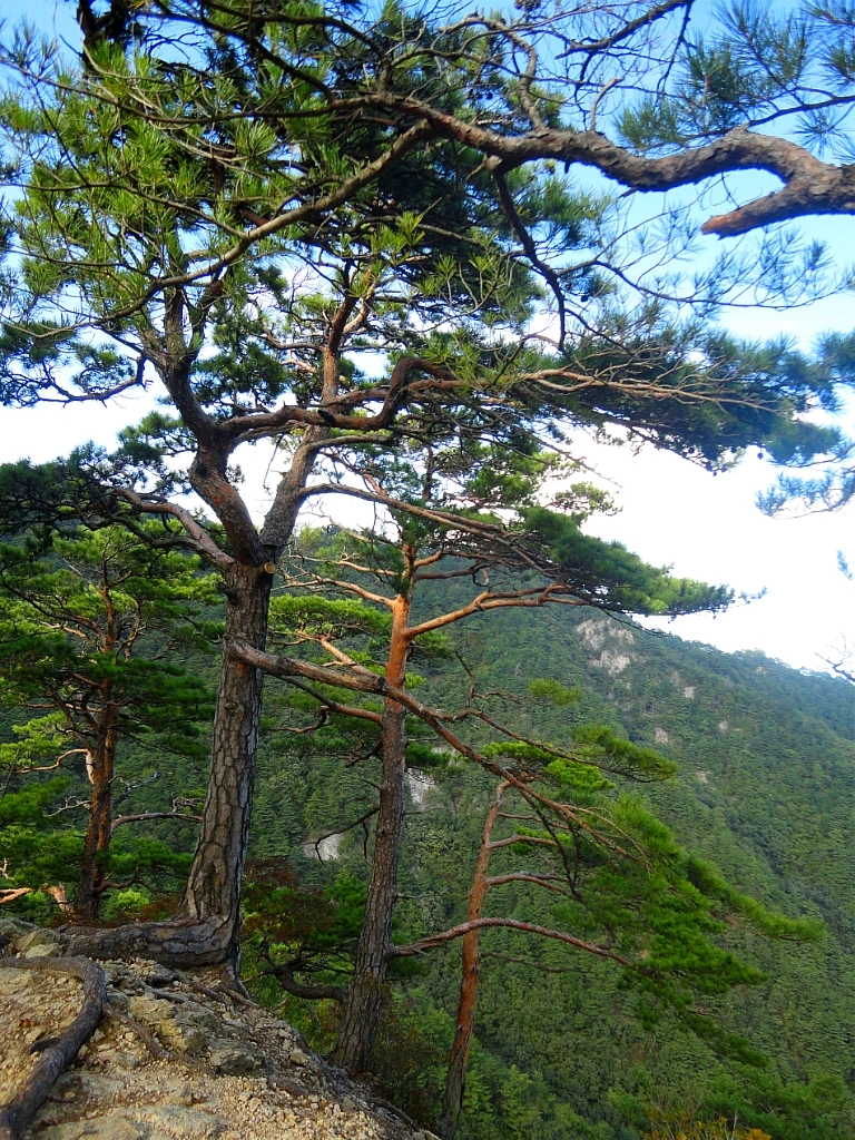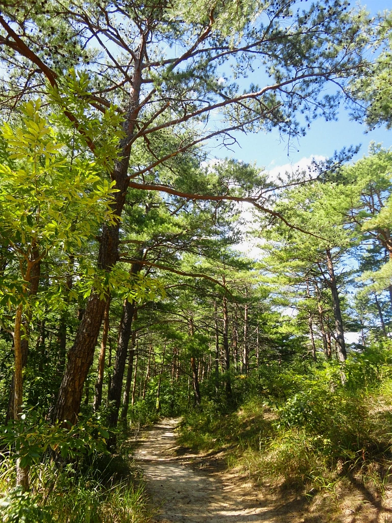 등산로 옆 절벽으로는 금강소나무 군락지와 잡목 숲이 교차해서 나타난다.