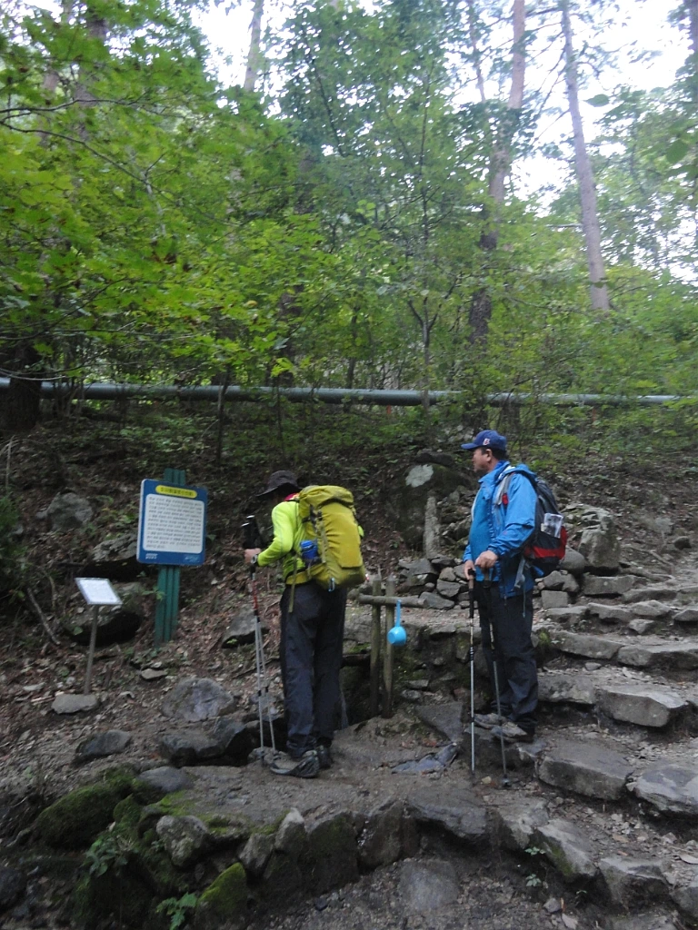 계곡을 한참 내려서서 효자 샘을 만난다. 특별할 만큼 건강에 좋다는 영험한 일화가 적힌 팻말을 읽으며 물맛을 음미한다.