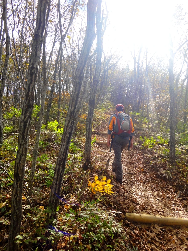 모두 허기를 느낄 시간 하산길로 접어든다. 온정리 원탕 쪽 덕구계곡 방면으로 걸음을 옮긴다. 두 곳의 헬기장을 지나고 금강송에 둘러싸인 전망대부터는 경사가 급하다.