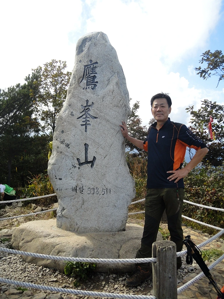 무명의 오랜 설움을 떨쳐내고 싶었을까. 정상석이 엄청 크다. 해발 998.5m의 응봉산 정상, 2m가 넘는 정상석을 감안하면 응봉산은 세 자리 숫자를 초월하는 높이인 셈이다.