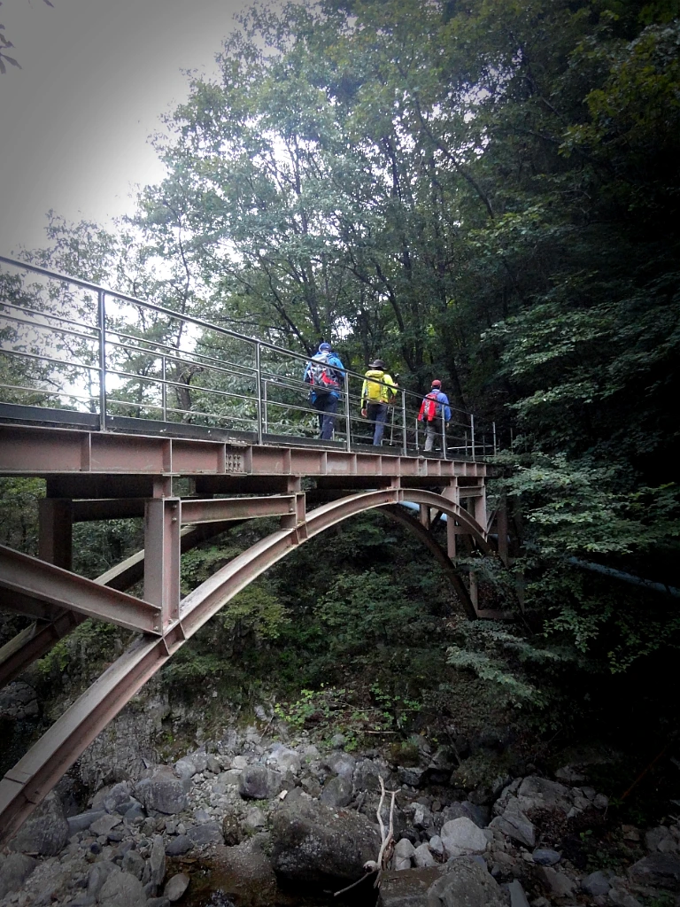 가파른 너덜 길을 지나 계곡과의 합수점인 포스교에 이르자 콸콸 물 흐르는 소리가 들린다. 응봉산 원탕 하산로에는 열세 개의 다리가 있다. 세계 각국의 다리 모양을 본떠 만들었고 그 명칭을 인용하였다. 제13 교량인 영국의 포스교를 막 건너왔다.