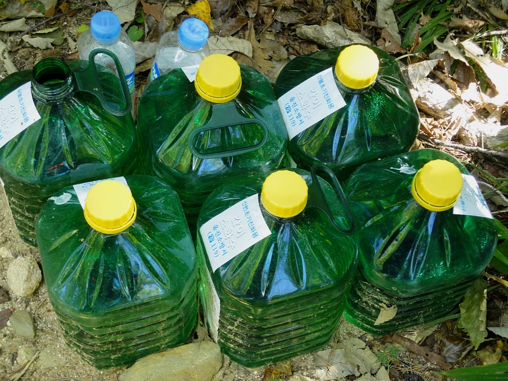 등산로 곳곳에 비치한 산불 초기진화를 위한 간이 소화수가 놓여있다. 담배 피우는 산꾼들을 위한 배려인가 보다.