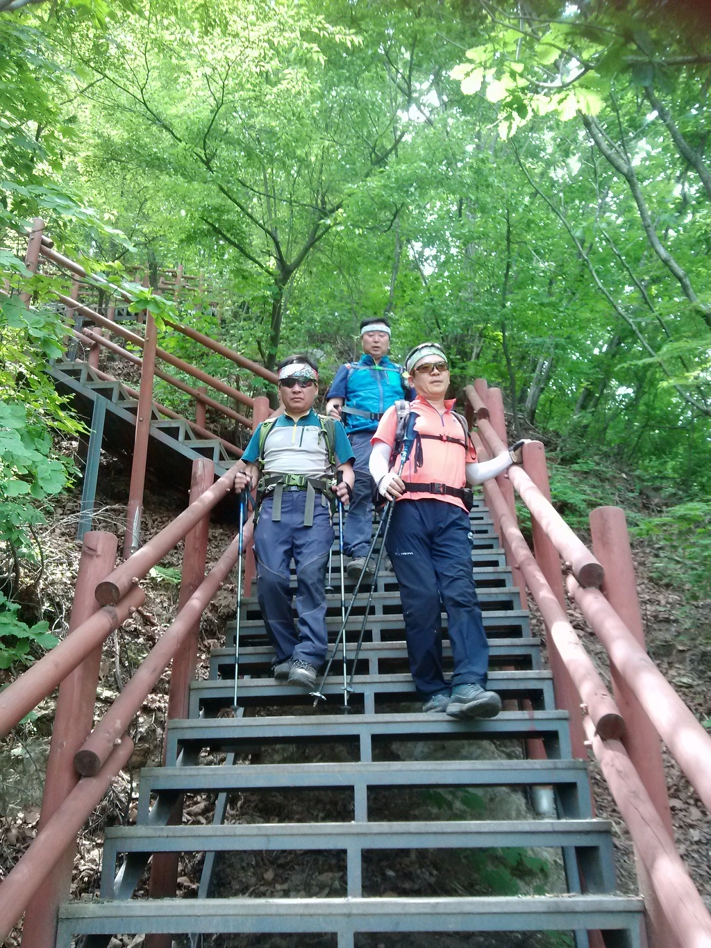 식사와 반주 후의 산행길, 이젠 지칠 법도 한데 한치의 망설임도 없이 고행의 다리를 건넌다.