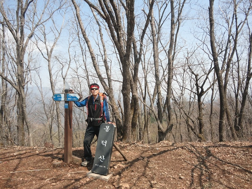 홍적 고개에서 몽덕산을 오르는 길은 비교적 평탄하다. 신록의 계절에 접어들었지만, 이곳은 아직 겨울 잔해들이 채 걷히지 않은 모습이다. 나뭇가지는 앙상하게 헐벗었고 땅바닥도 온기 뿜어내려면 시간이 더 필요할 듯하다.