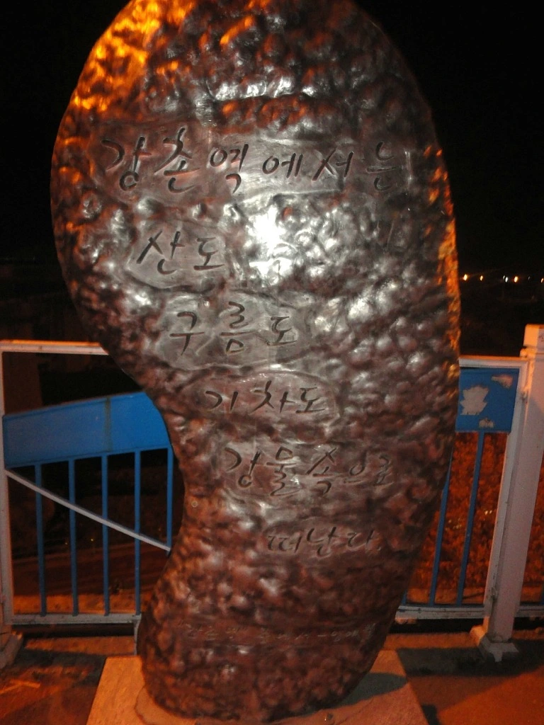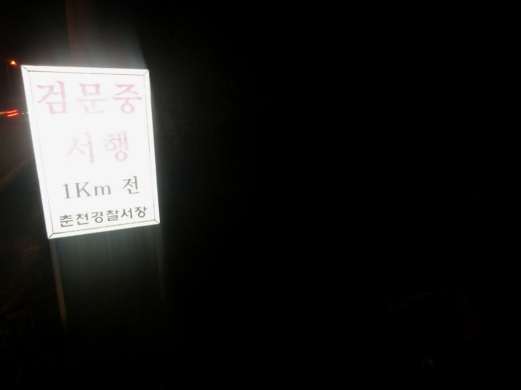 불빛을 보고 내려오니 강촌검문소에서 1km 떨어진 국도변이다. 강변 국도 갓길을 걷는 것도 내리막 산길만큼이나 무섭다. 밤바람을 가르는 차들의 속도가 엄청나다.