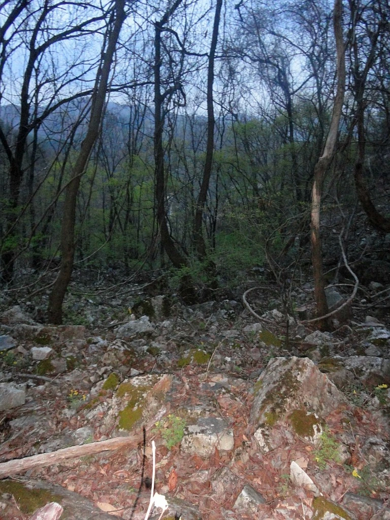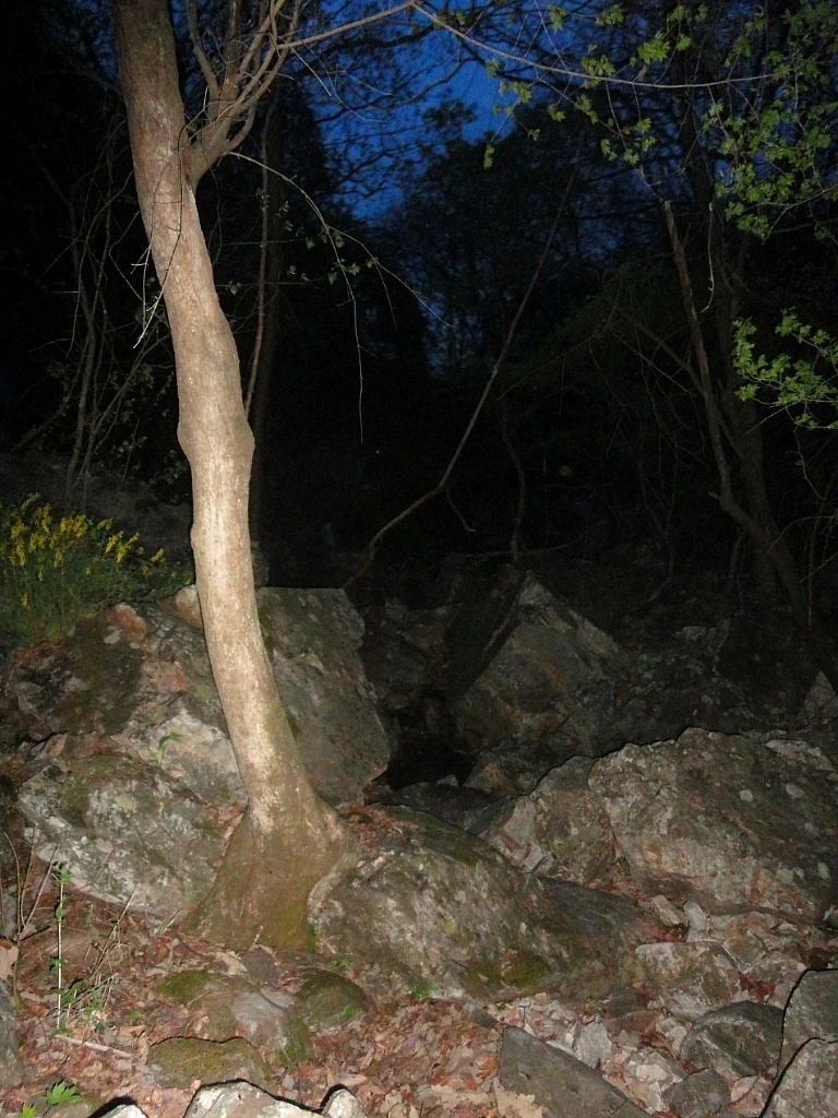 그랬어도 미끄러워 헛디디기를 수차례, 거의 80도에 가까운 낙엽 경사로를 간신히 내려오고 보니 바위가 굴러 생긴 애추崖墜의 너덜지대다. 경직된 긴장 탓으로 온몸이 땀에 젖었다. 이미 어둠이 산을 휘덮었다.