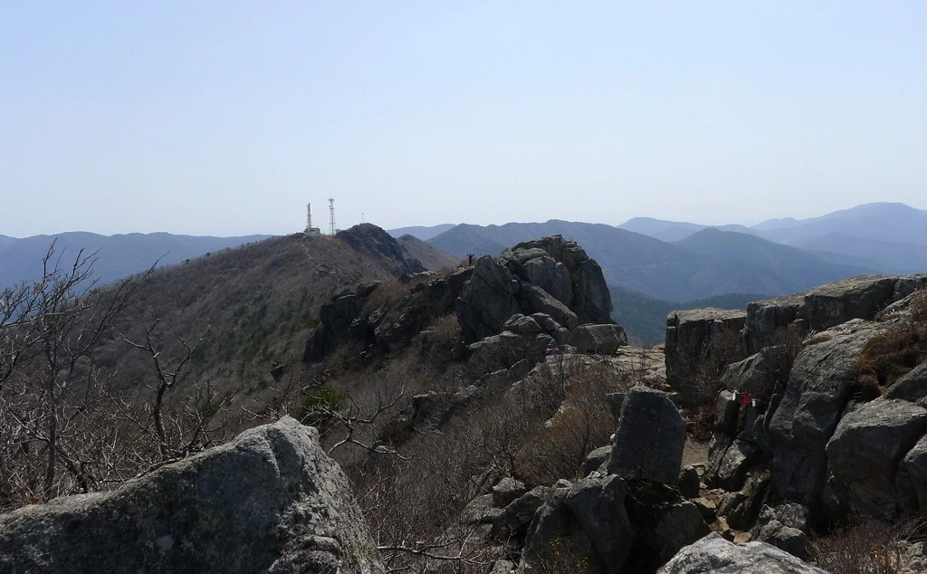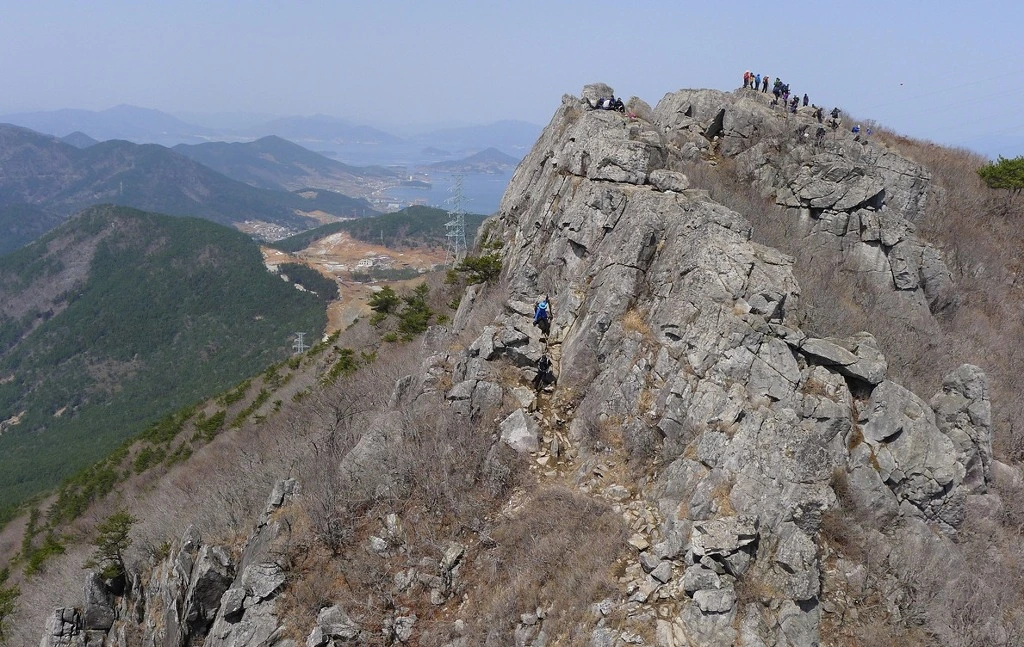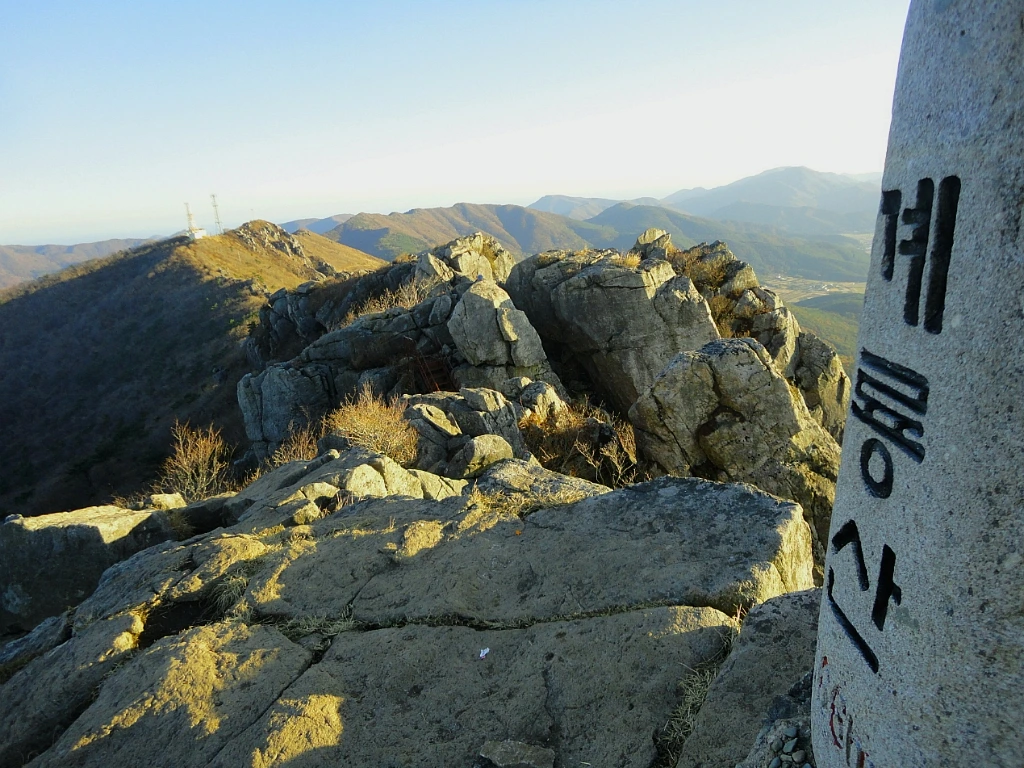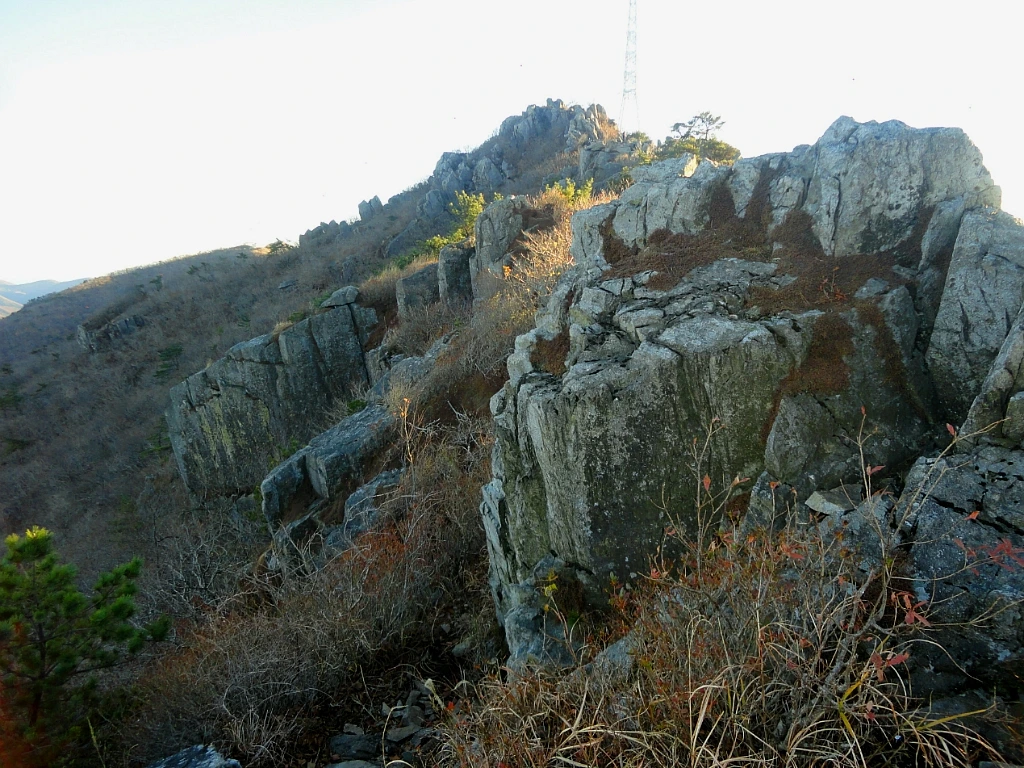 비켜서서 보니 정상의 바위들이 닭 벼슬을 닮은 것처럼 보인다.
