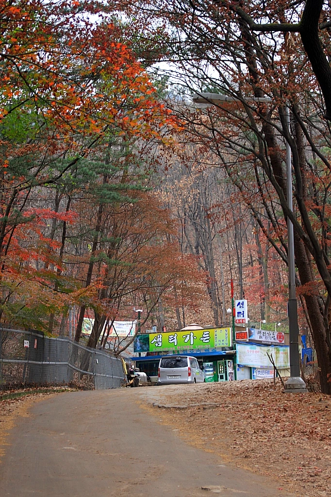 도봉산에서 내려와 청산가든을 끼고 왼쪽으로 돌아 우이령 가는 길이 마지막 종주길 북한산 들머리이다. 11월 중순이 지났음에도 아직은 가을임이 분명하다며 이파리 빛깔 바래지는 걸 거부하고 있다.