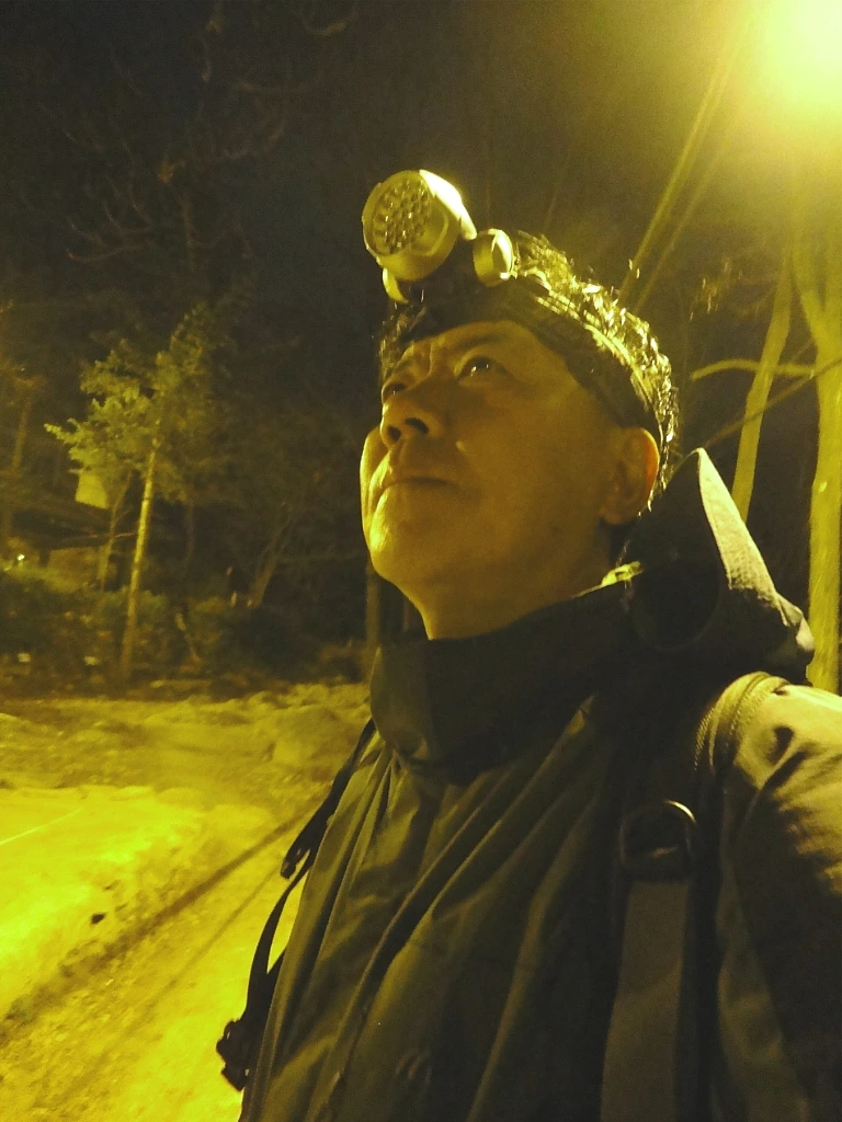 학도암을 지나치게 된다. 불빛 밝은 내부를 보니 고시촌 분위기가 물씬 풍긴다. 고시 공부를 하거나 경을 읽으며 정진하거나 다 무언가를 위한 고행일 텐데 어둠 밝히며 수고하는 그들의 뜻이 이뤄지길 바라며 어둠을 뚫고 올라간다. 점차 도심의 불빛이 멀어지기 시작한다.