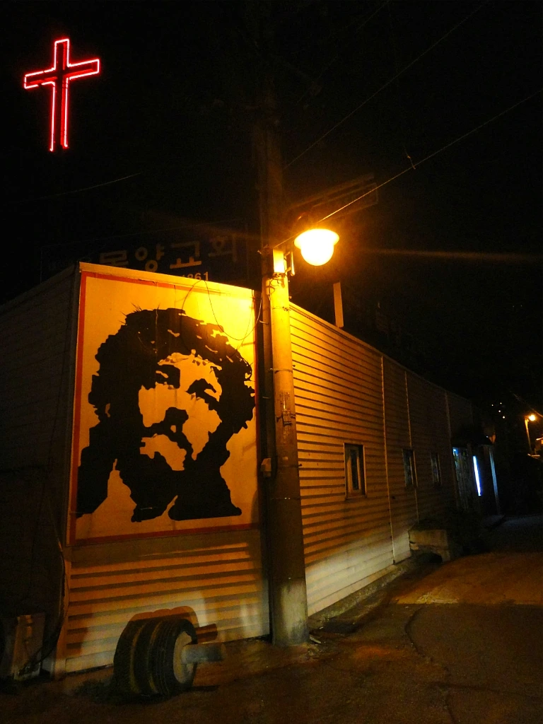 개 짖는 소리조차 들리지 않아 여기가 사람 사는 동네가 맞는가 두리번거리게 된다. 가뜩이나 위축되어 있는데 더욱 긴장하게 된다. 그런데 골목 모퉁이에서 그분이 나타나셨다. 홀연히 모습을 드러낸 예수님이 떨리는 마음을 풀어주신다.