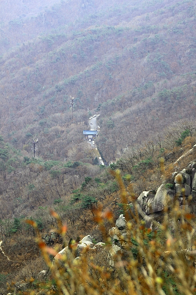 밑으로 도선사 입구를 내려다보고 영봉에 이르렀다. 아직 이른 시각이라 영봉에 닿을 때까지도 등산객 한 사람을 만나지 못했다. 주말이기 때문에 늦가을 정취를 맛보고자 많은 이들이 몰려들 것이다.