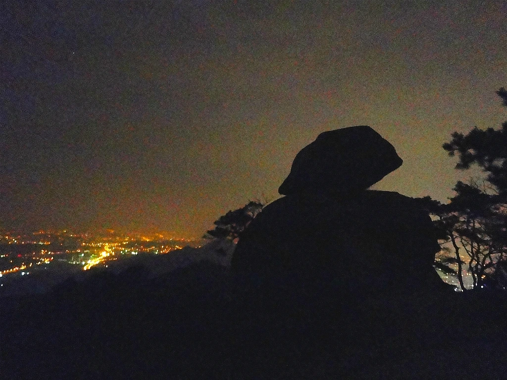 산 아래 도심 불빛과 하늘 아래 어둠을 벗 삼아 불암산 정상(해발 508m)에 올랐다. 헬기장 너머로 남양주 쪽 야경이 곧 겨울이 올 것을 알리는 양 스산하다.