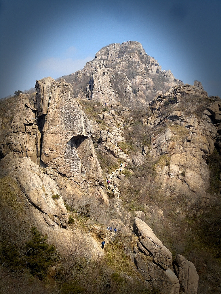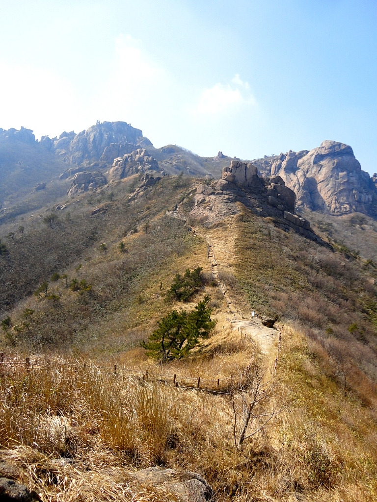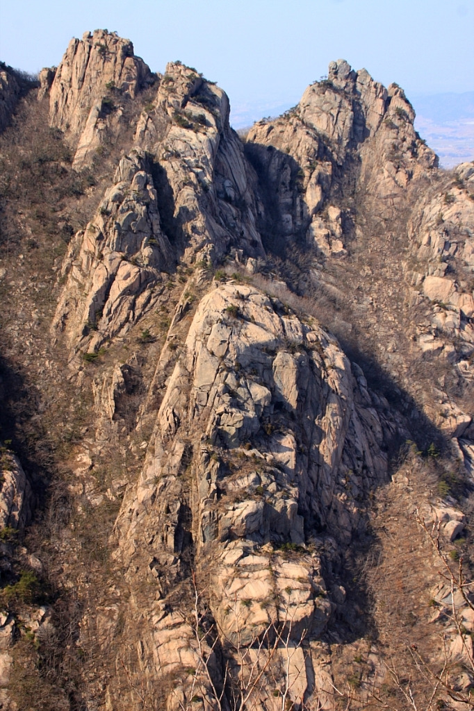 안개가 깔리지 않아 무척 다행이다. 준엄한 서릿발처럼 느껴졌을지도 모를 칼바위들의 윤곽이 햇빛을 받아 다감한 느낌을 주었기에 더 그렇다.