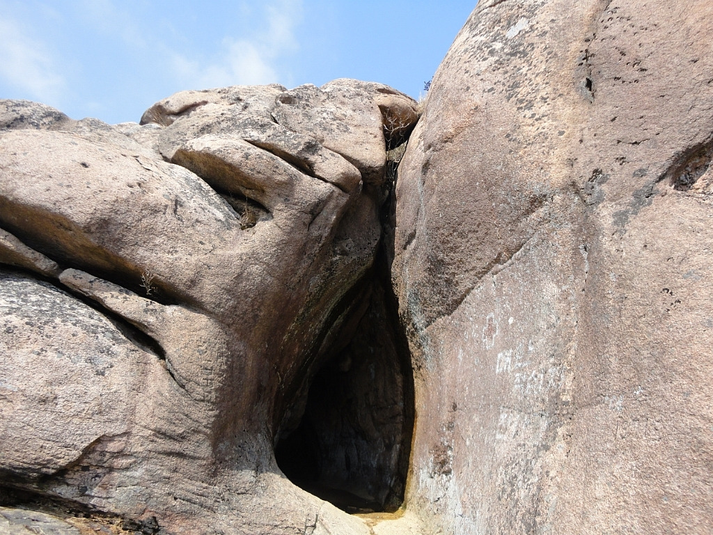 반대편에서 오는 산객들로 서로 교차하는 구간에 이를 즈음 베틀굴이 향하고 있다는 남근석이 보인다. 우람하고 꼿꼿하다. 이 바위를 올려다보노라니 묘한 기분이 든다. 시선을 멈추는 다른 남성들의 기분은 우쭐할지 어떨지 머리를 긁적이는데 여성 등산객들이 그 설명 팻말을 본다.